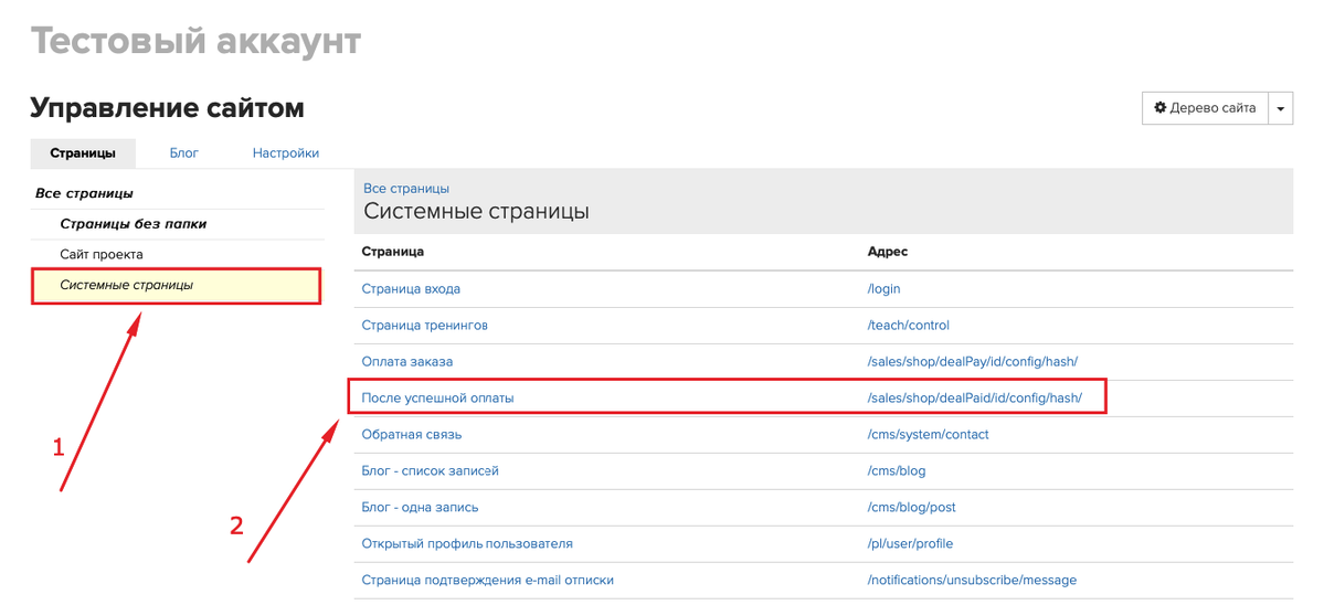 Переходим на вкладку меню «Страницы» — «Системные страницы»