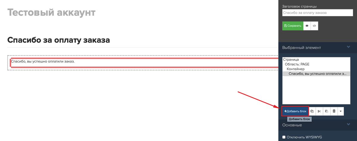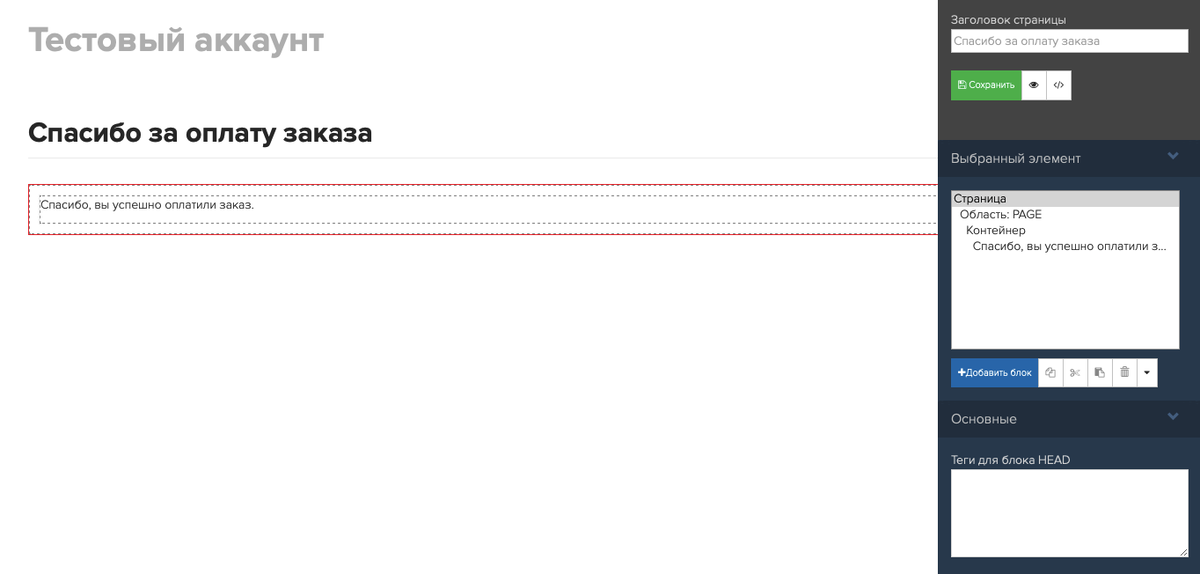 Шаг 3. Редактируем страницу После успешной оплаты: